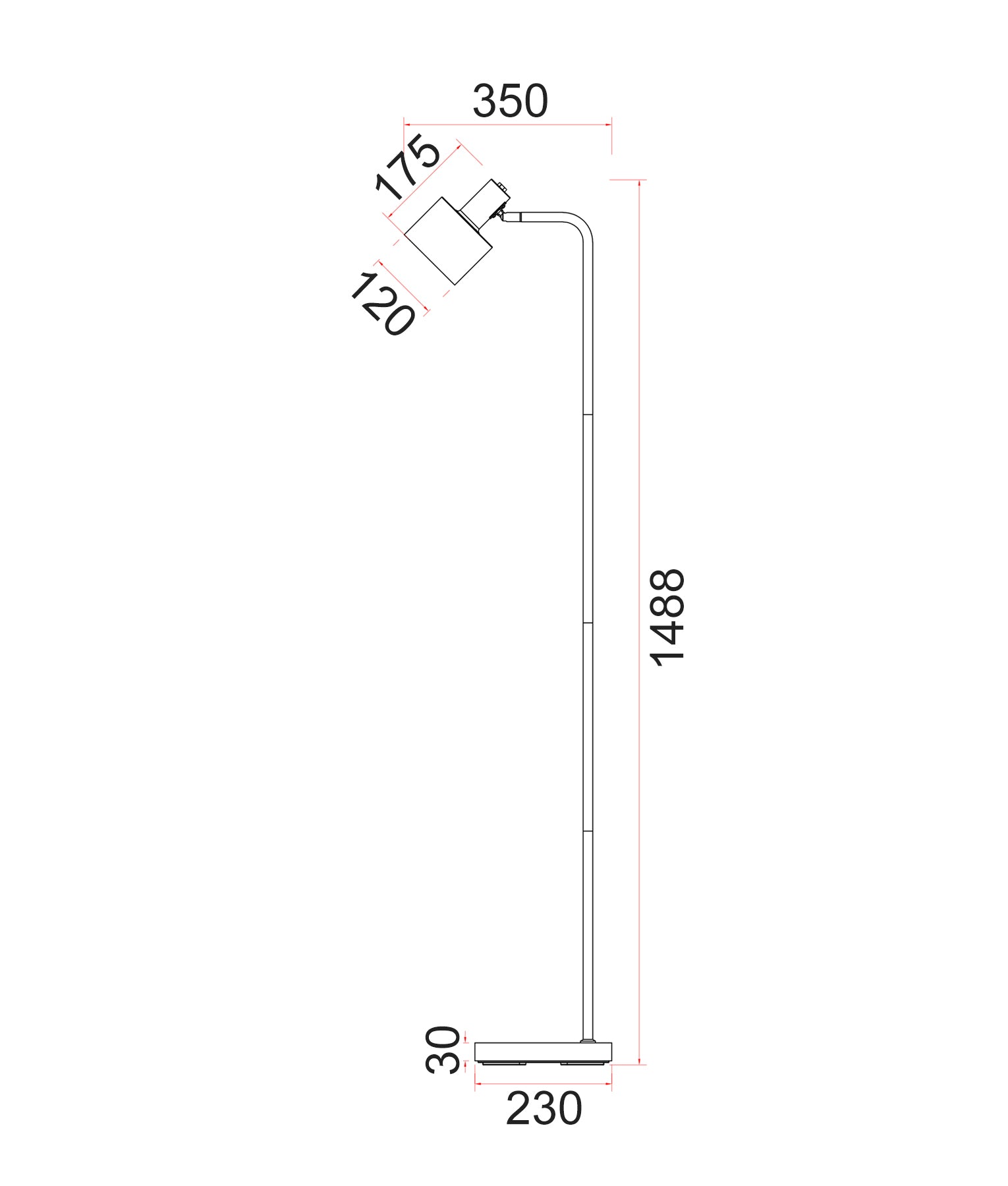 Description: FLOOR ES 60W Matt BLK w/Ant Brass Highlight CYLINDER OD120mm (Shade) Adjustable Head H1488mm Base w/Switch WTY 1YR