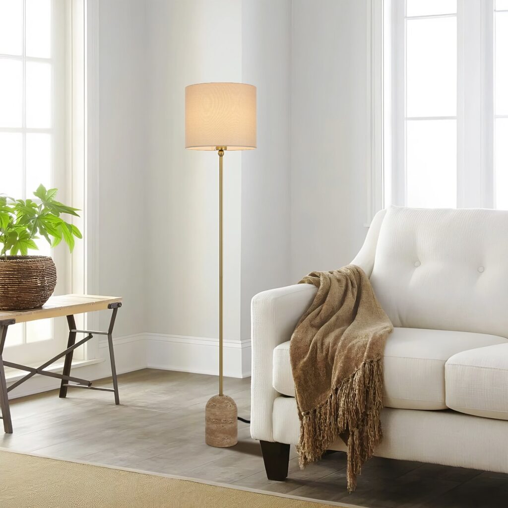 The Livia floor lamp is an elegant lighting solution that features a sophisticated design with a travertine base and a stylish fabric shade. This lamp is not only a functional lighting element but also a tasteful addition to any interior space. The Livia series also includes a table lamp option, providing versatility in lighting choices. With two distinct colour options available, this lamp allows you to customise and enhance the ambiance of your room with a touch of timeless and refined style.