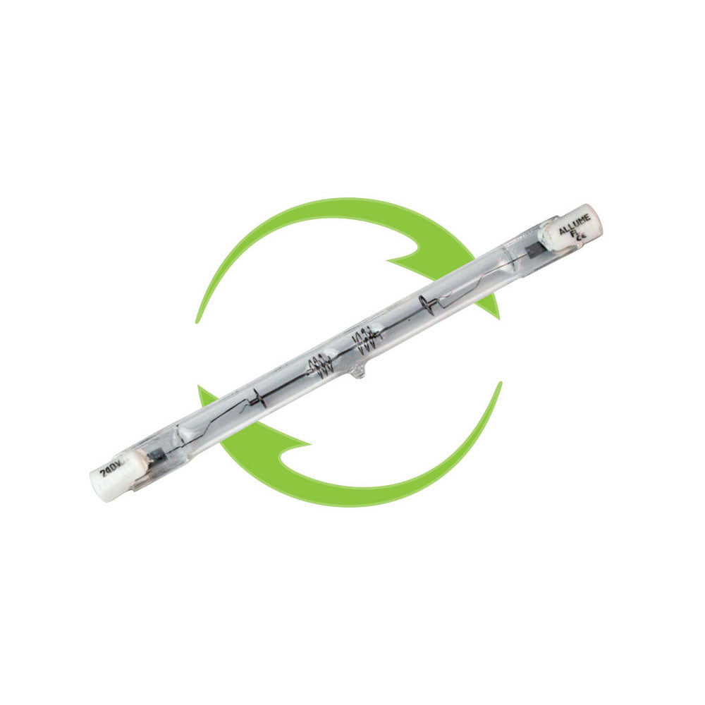 Energy Reduction linear halogen lamp. 118mm long. Longer life and lower operating temperature, fully dimmable. Mostly used in outdoor flood lights.
