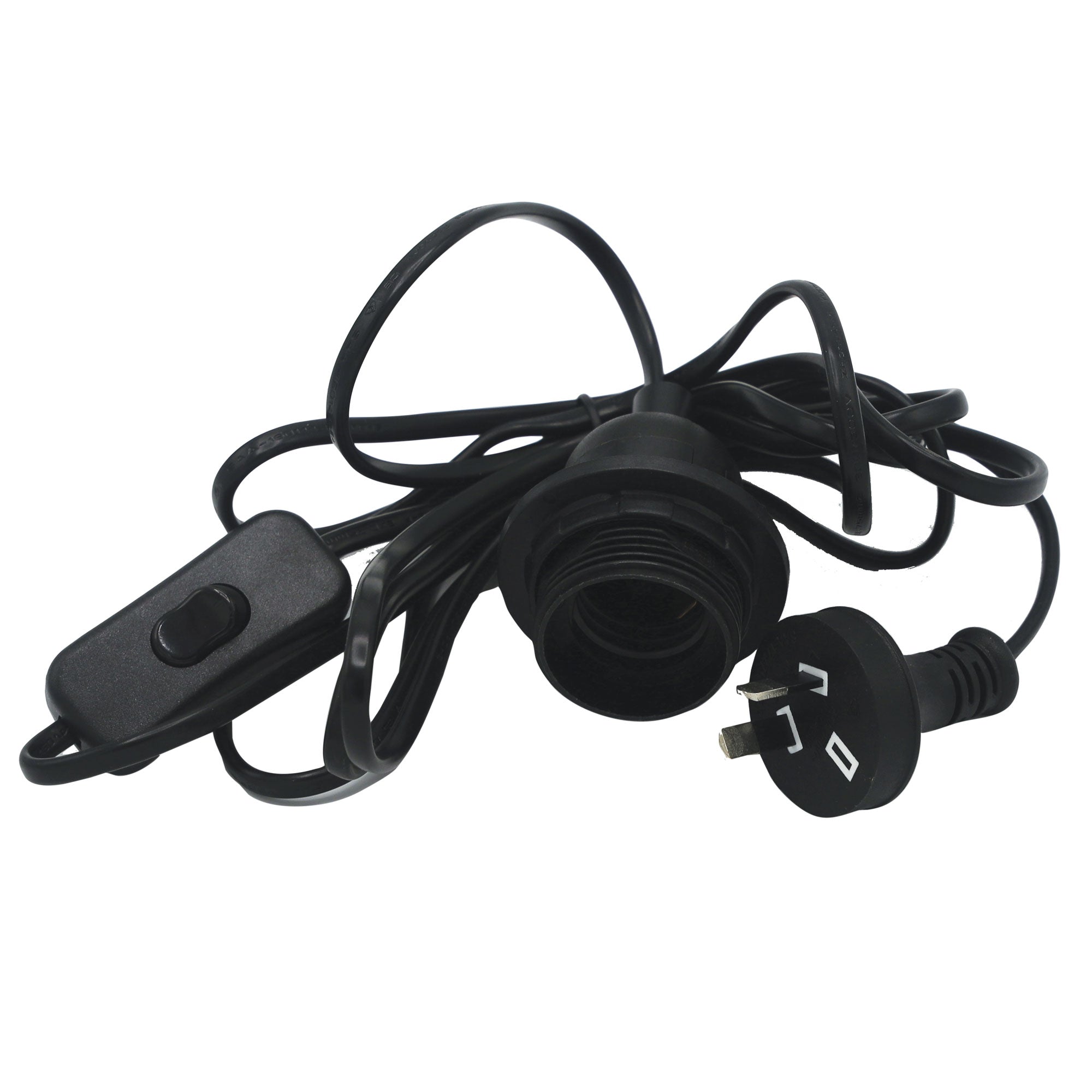 E27 Cord Set, with plug, wire, cordline switch and E27 lampholder with skirt (shade ring). Total length 270cm – 175cm from plug to switch and 95cm from switch to lampholder.