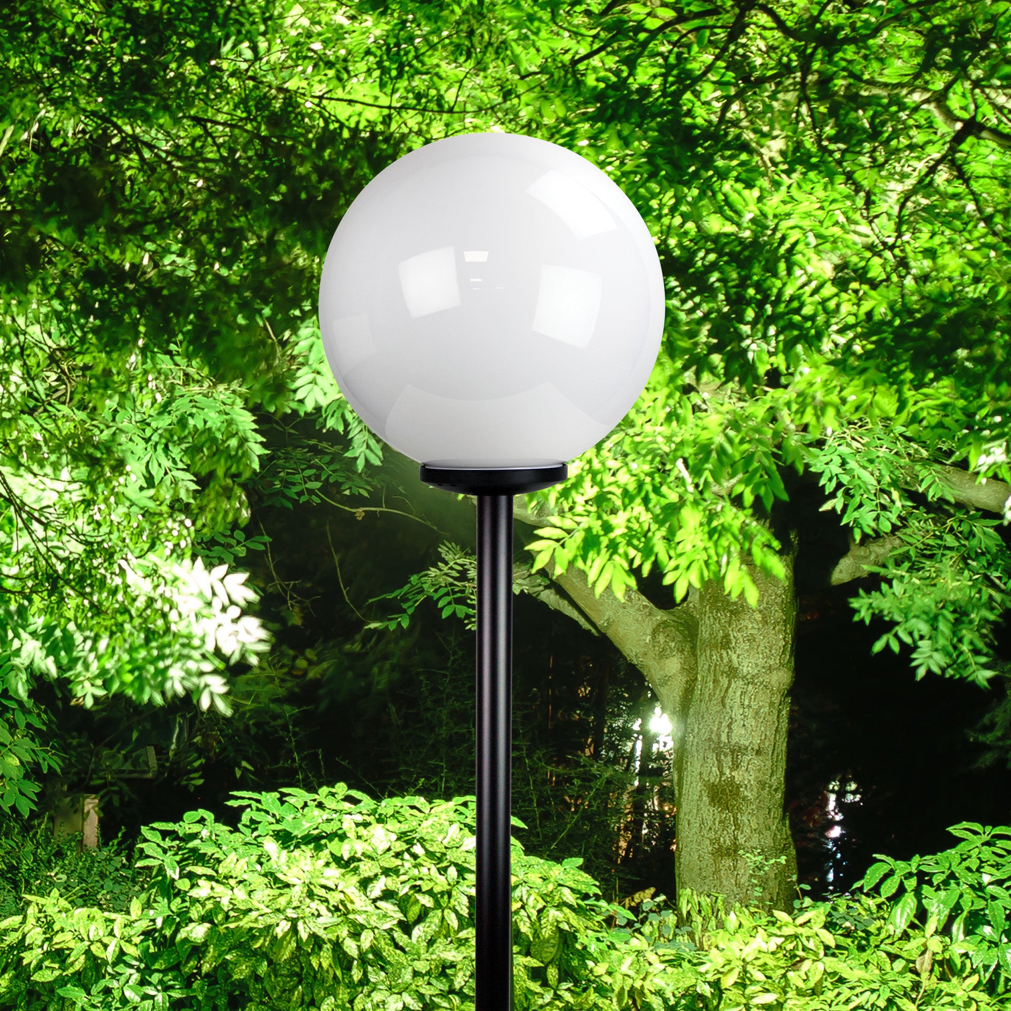 Galactic opal acrylic outdoor post top is available in six sizes from 20-50cm in diameter. Supplied complete with a black ABS plastic base which fits onto a 60mm (outside diameter) post. Posts and pillar-mount or wall-mount accessories are available separately. Galactic has an E27 ceramic lampholder.