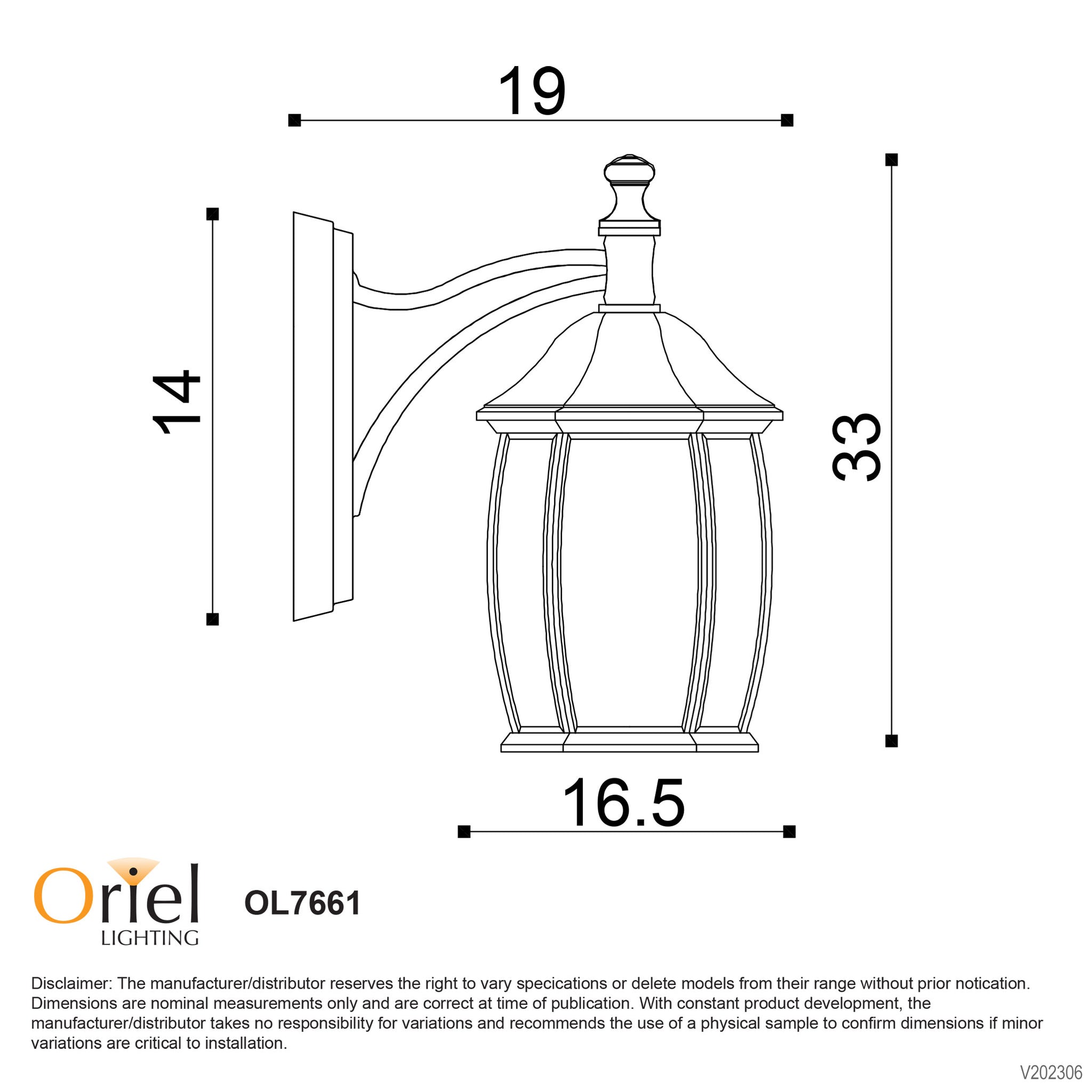 Traditional coach style downward facing outdoor (IP44) wall light. Powder coated aluminium with clear, bevelled glass panels. Open at the bottom.