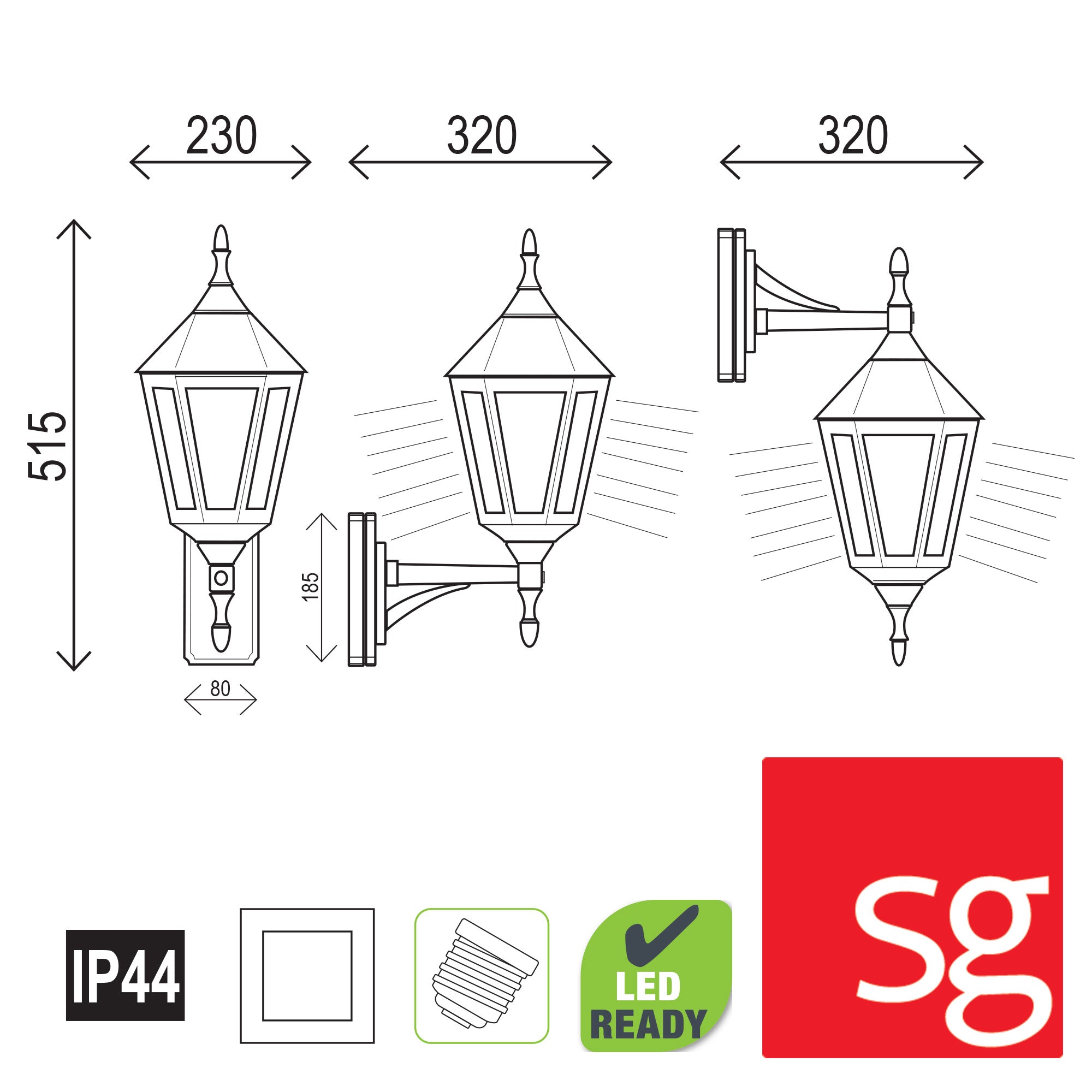 Ibiza can be converted from upward facing to downward facing prior to installation. A high quality powder coated aluminium coach light (IP44) with UV stabilised, vandal resistant polycarbonate lens. Class II double insulated. Available in black or white.