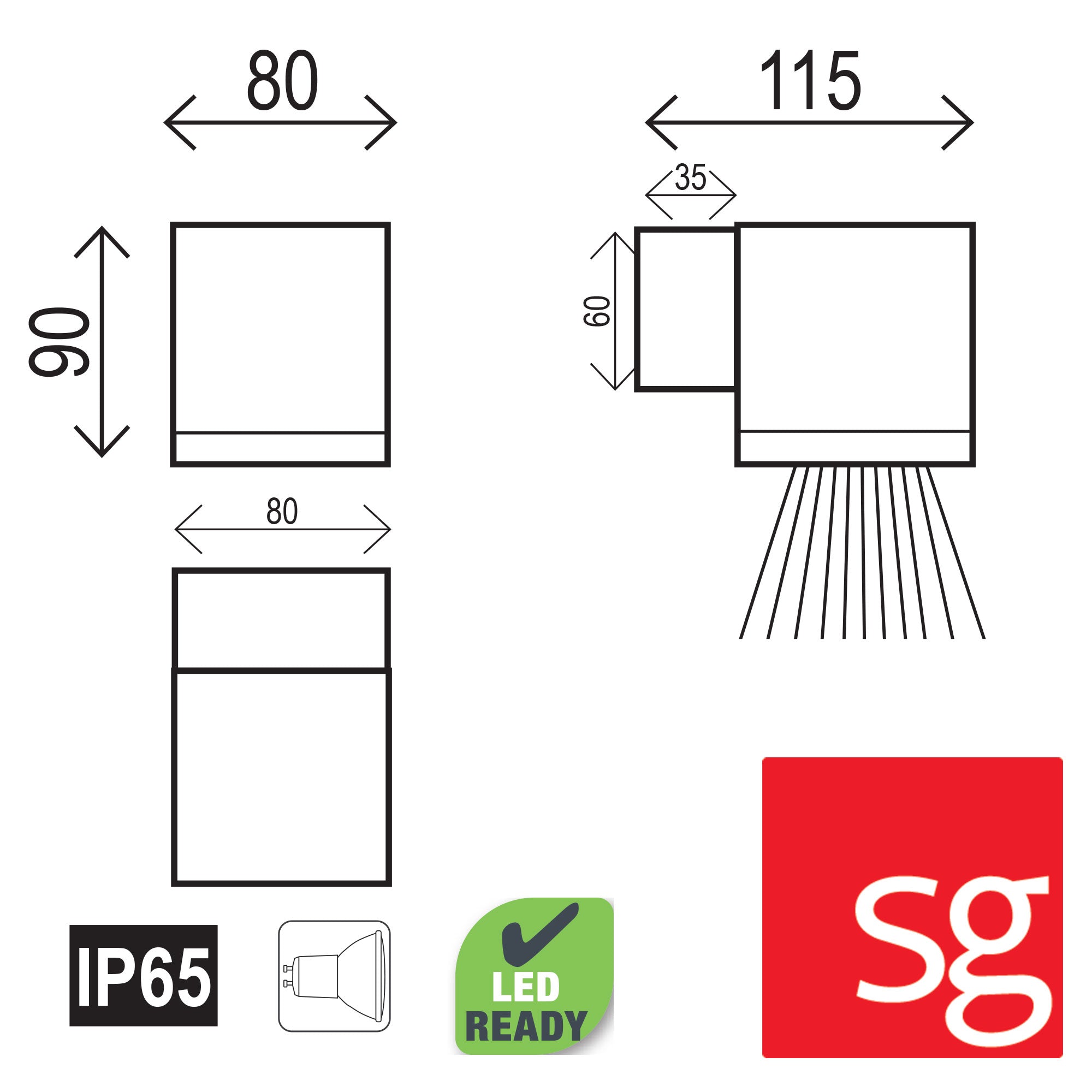 Kube outdoor wall light from SG lighting is LED GU10 ready. The SG range features high quality poly powdercoated finishes on chromic treated first quality alloy. This rigorous finishing process ensures that this fitting will look like new for many years. Kube is available in a down only or up/down version. Kube has a textured matt finish. Suitable for use with a GU10 globe, we recommend our Smart TC (temperature control) LED.