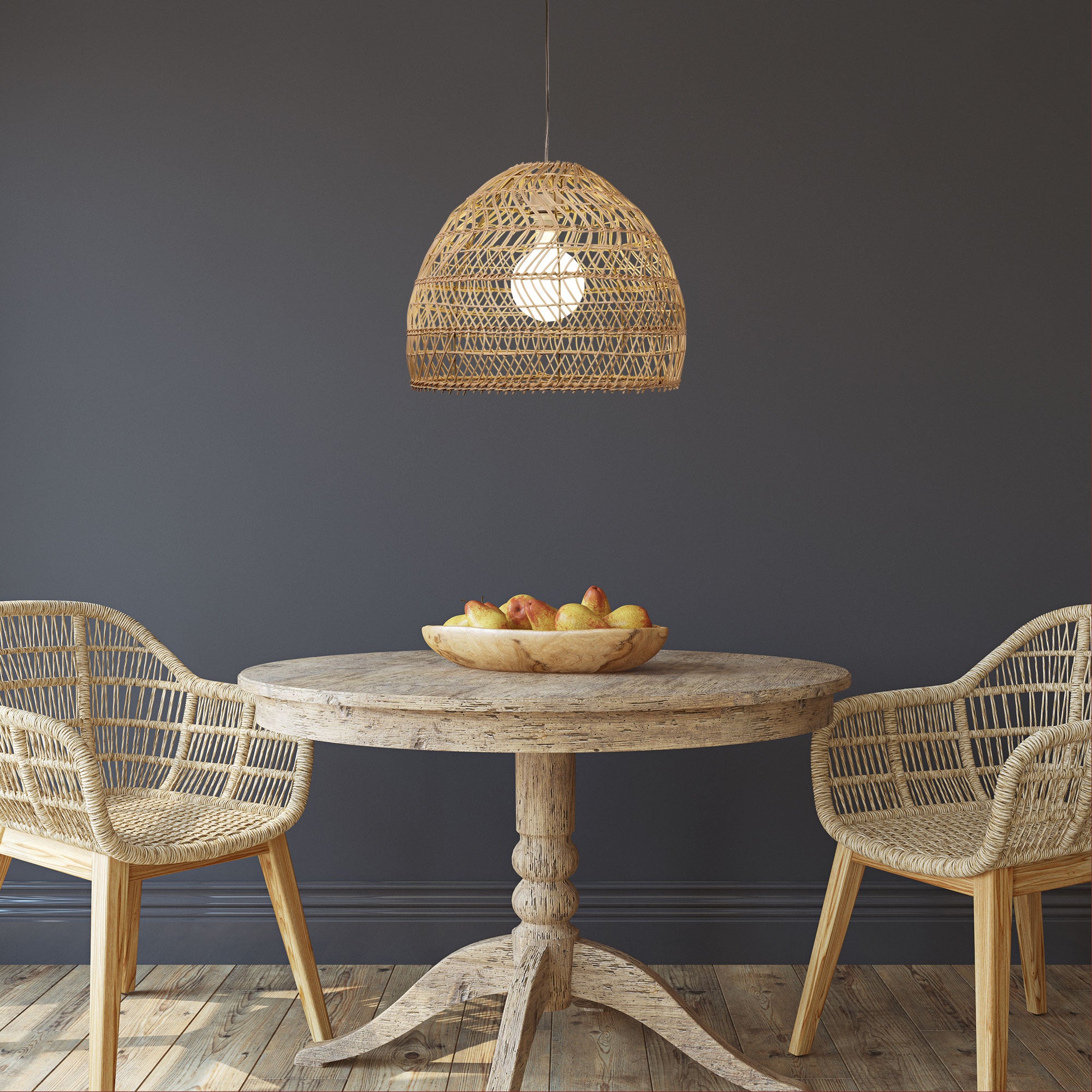 Lending itself seamlessly to a variety of styles including eclectic, Scandinavian, coastal, the Mette pendant shade will be a beautiful addition to any home. The spacious rattan weave and wide shade pairs perfectly with a decorative LED globe. The Mette has a 43mm shade ring, suitable for use with our Parti Suspensions ( Available separately).