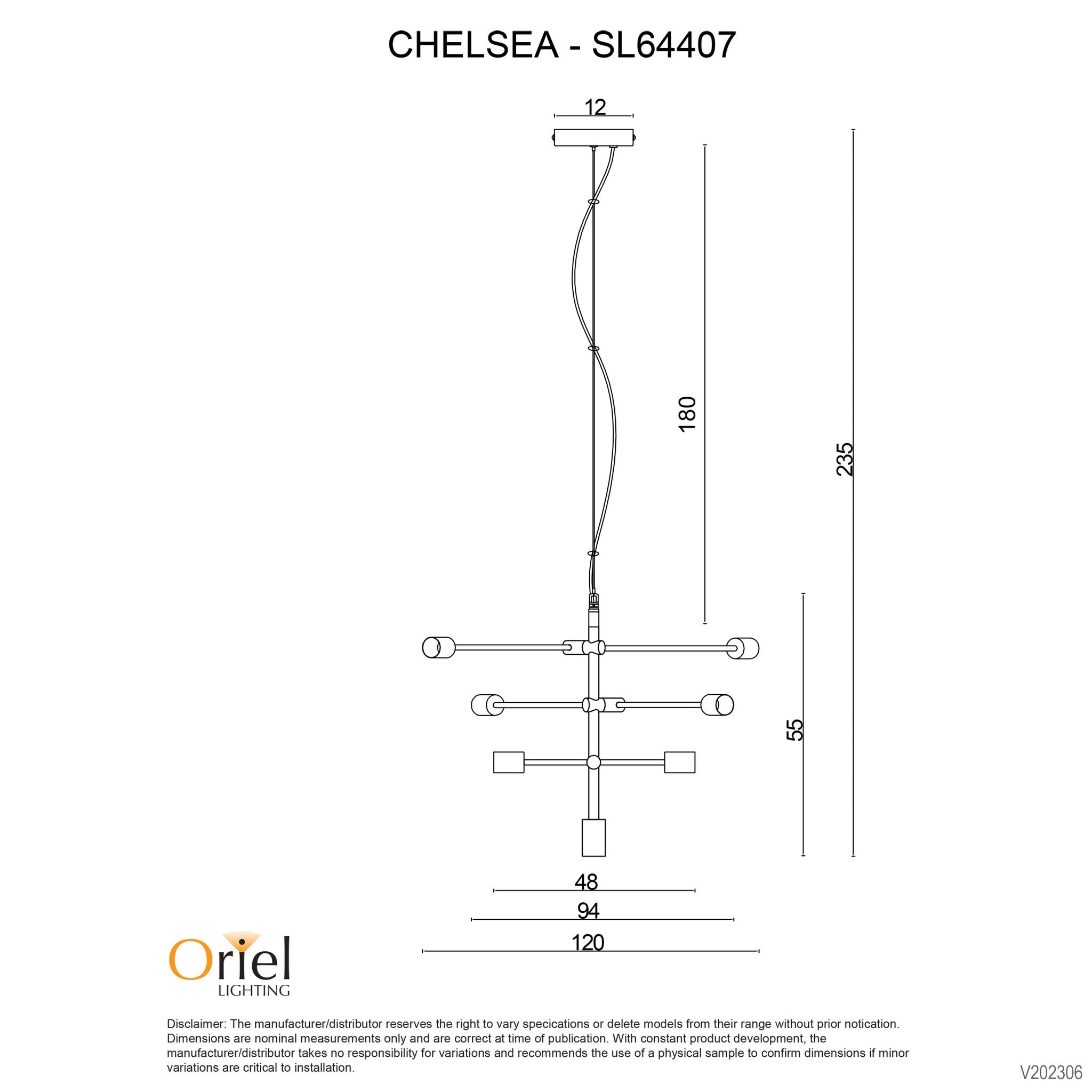 Large CHELSEA.120 geometric pendant will definitely make a statement in your room or stair well. Three pivoting arms can be angled and adjusted as you like. Chelsea.120 looks best with decorative globes, either opal or exposed filament (as photographed). Suspended on a wire and a clear cord. Chelsea is also available in a smaller size and a matching wall light.