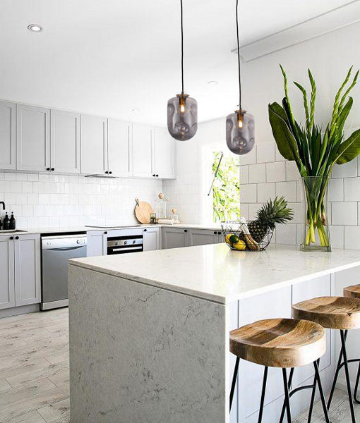 FOSSETTE: Interior Dimpled Smokey black Mirror Finish Oblong Glass Pendant Light