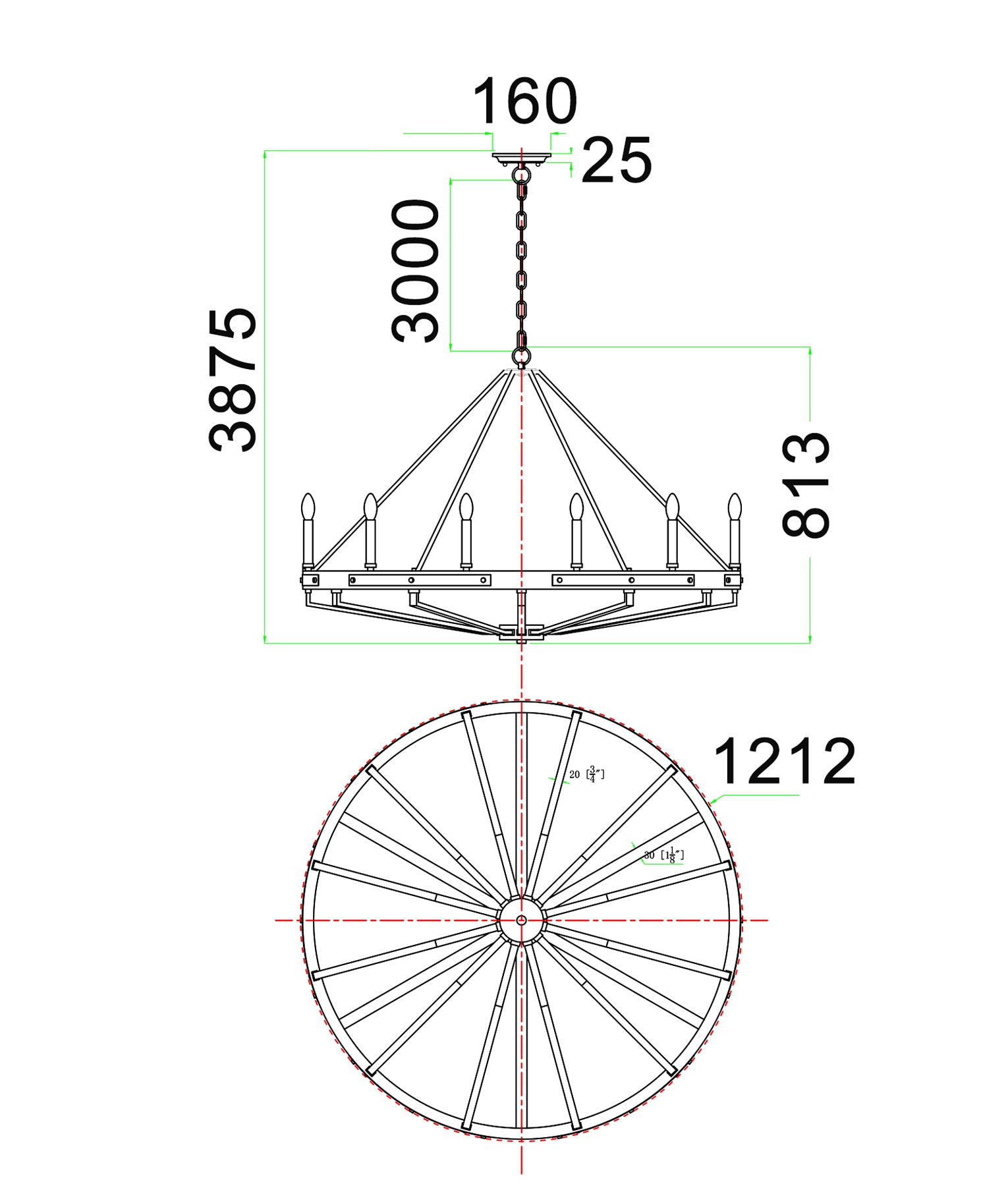 Description: PENDANT SES 12 x 60W Large Candelabra Natural Wood with Oil Rubbed Bronze Hardware OD1212mm x H813mm 3m Chain WTY 1YR