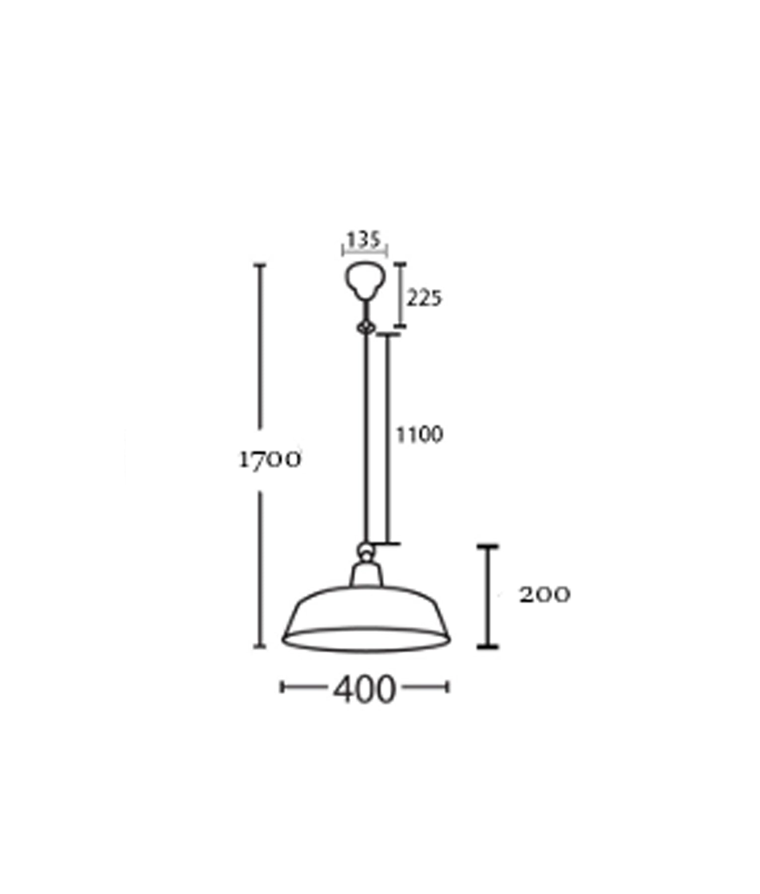 - Suspension: 1500mm cable & chain; canopy size: Ø135 x 225mm