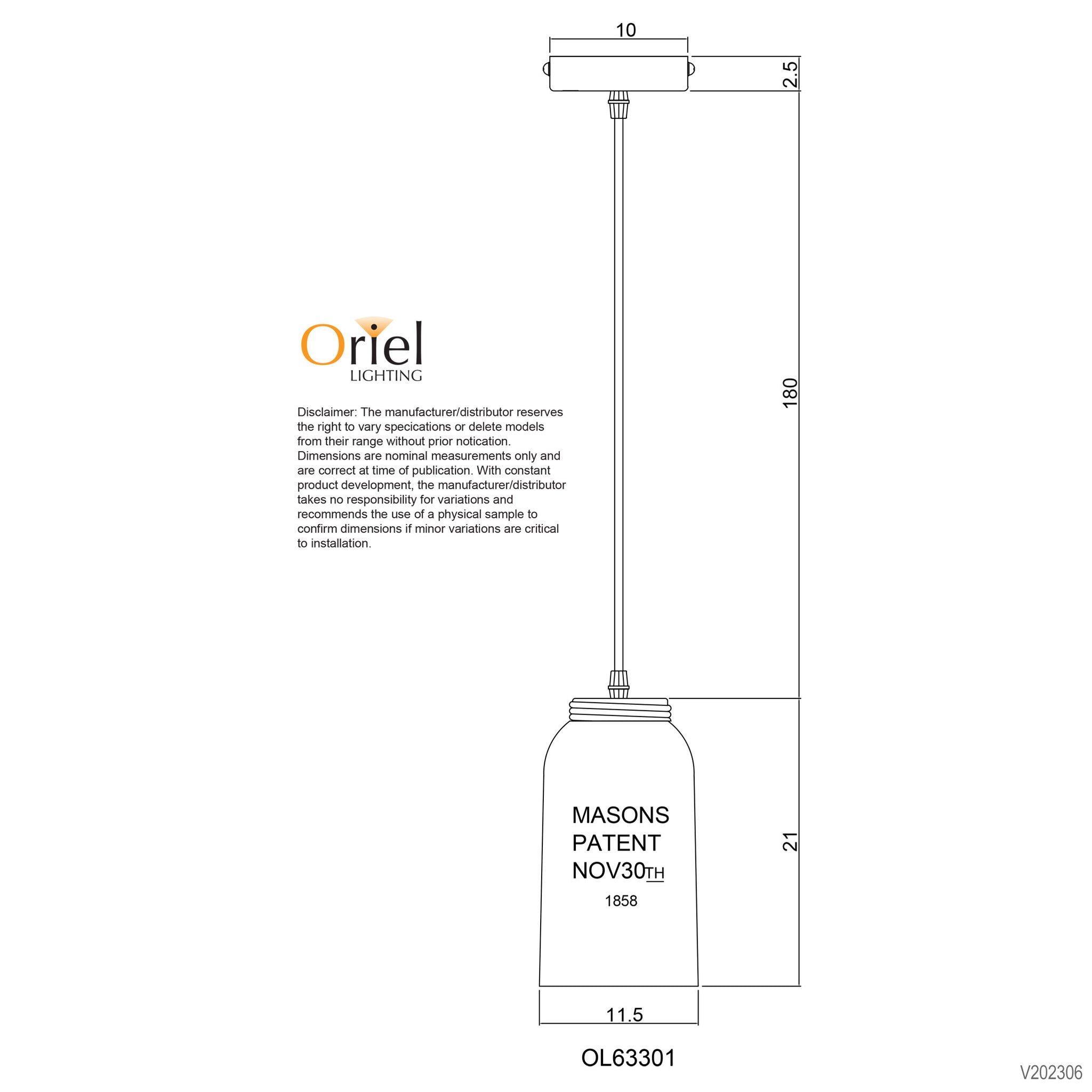 MASON - Vintage Preserving Jar Pendant Clear Glass