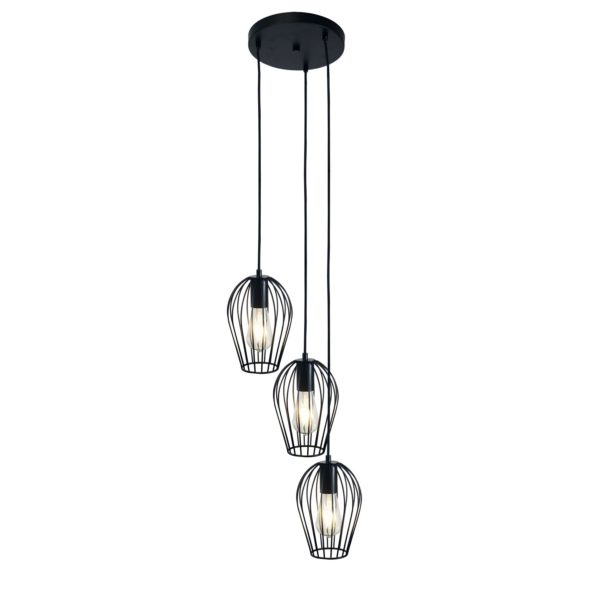 The OLAM tri-light is a 3 light dropper pendant on a round ceiling plate. Available in satin black pained steel, the OLAM looks great with LED filament globes, suspended over a table, in a stairwell or as a feature light.