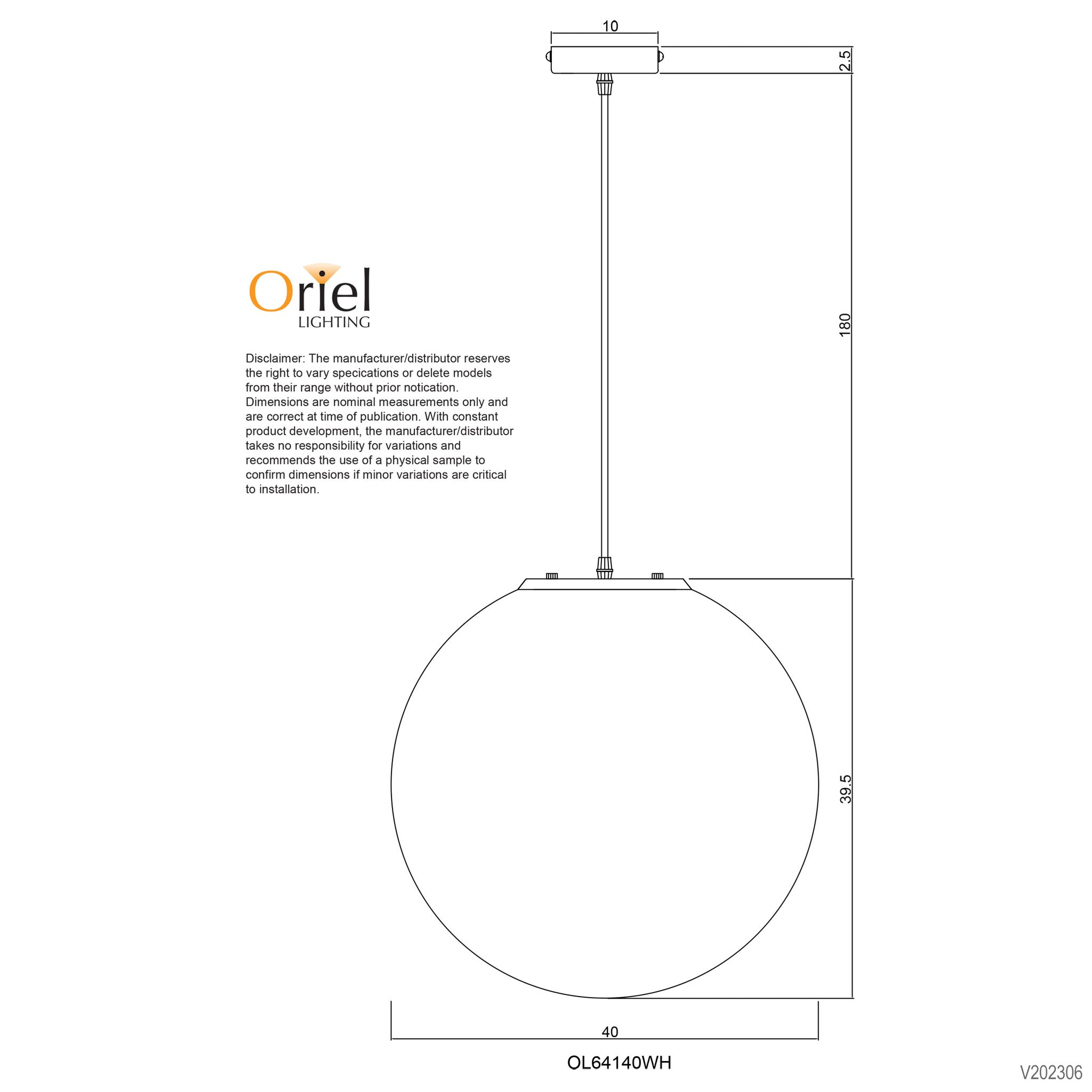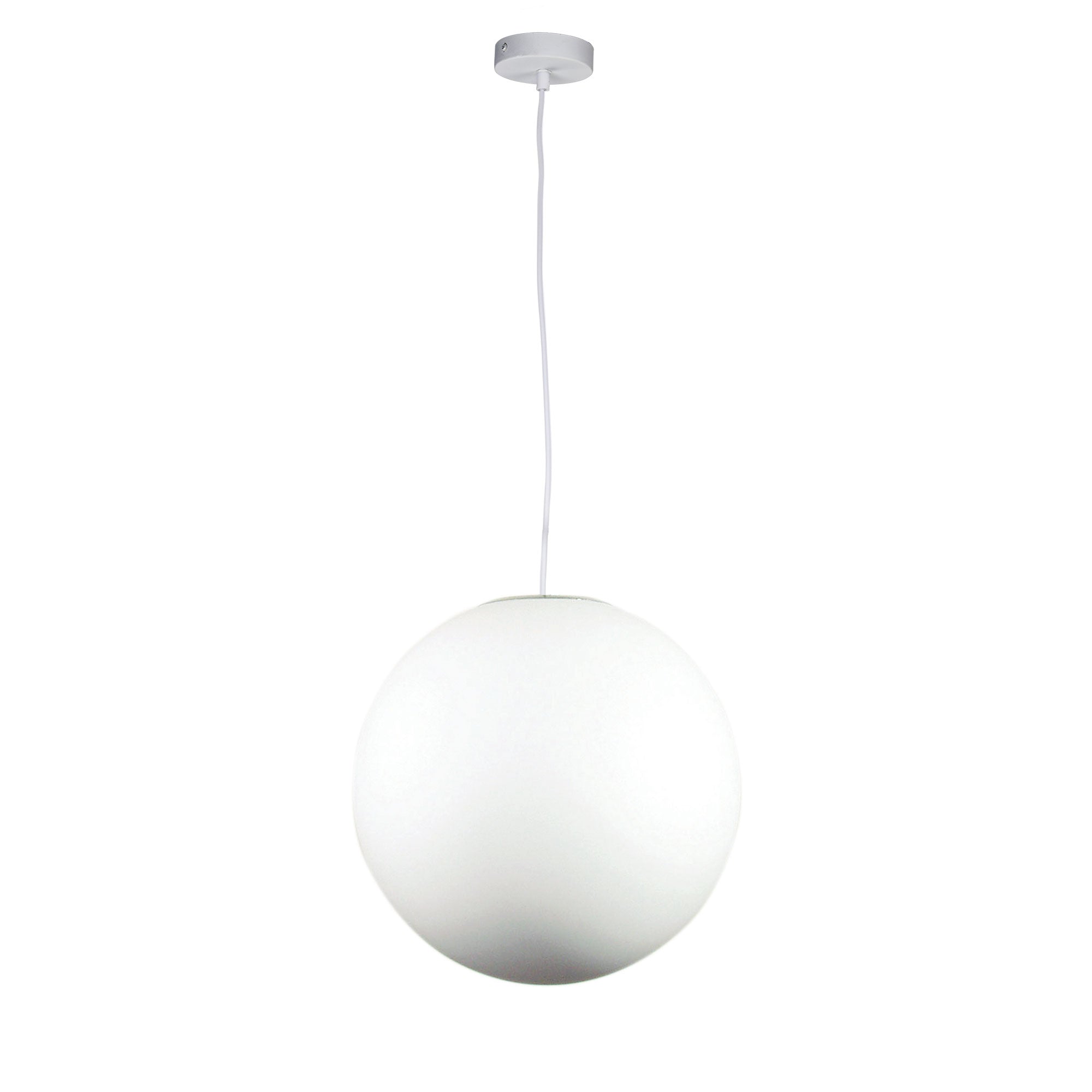 Matt opal acrylic pendant with white PVC cord and white painted canopy. The ball features a matt finish which is easy to keep clean and ideal for use with an opal LED globe. The moulded ball is made using a rolling / rotational mould and there are often thicker parts to the wall, sometimes producing a shadow, this is not a defect it is part of the manufacturing process.