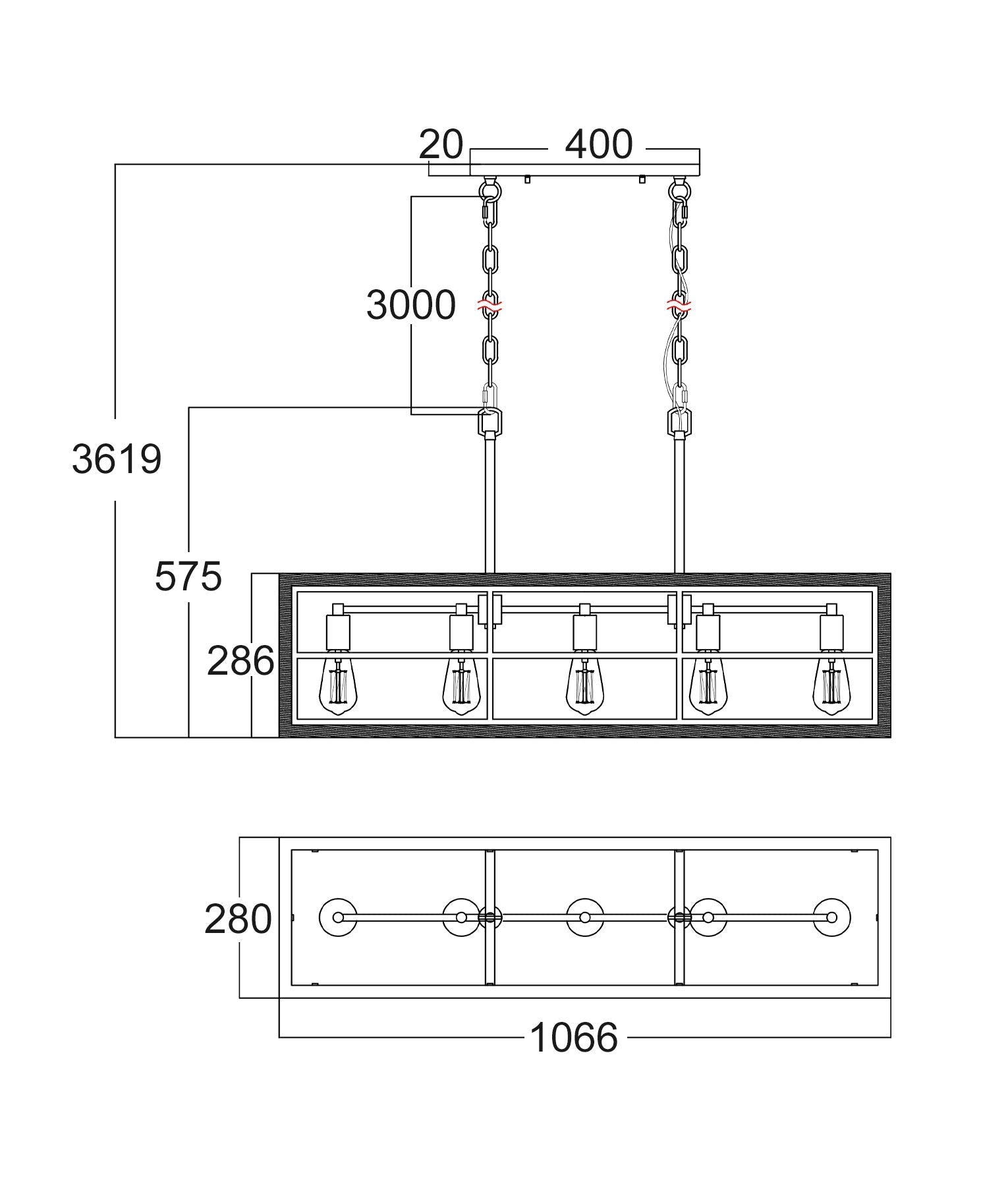 Description: PENDANT ESx5 Rect Medium Oak Wood L 1066mm