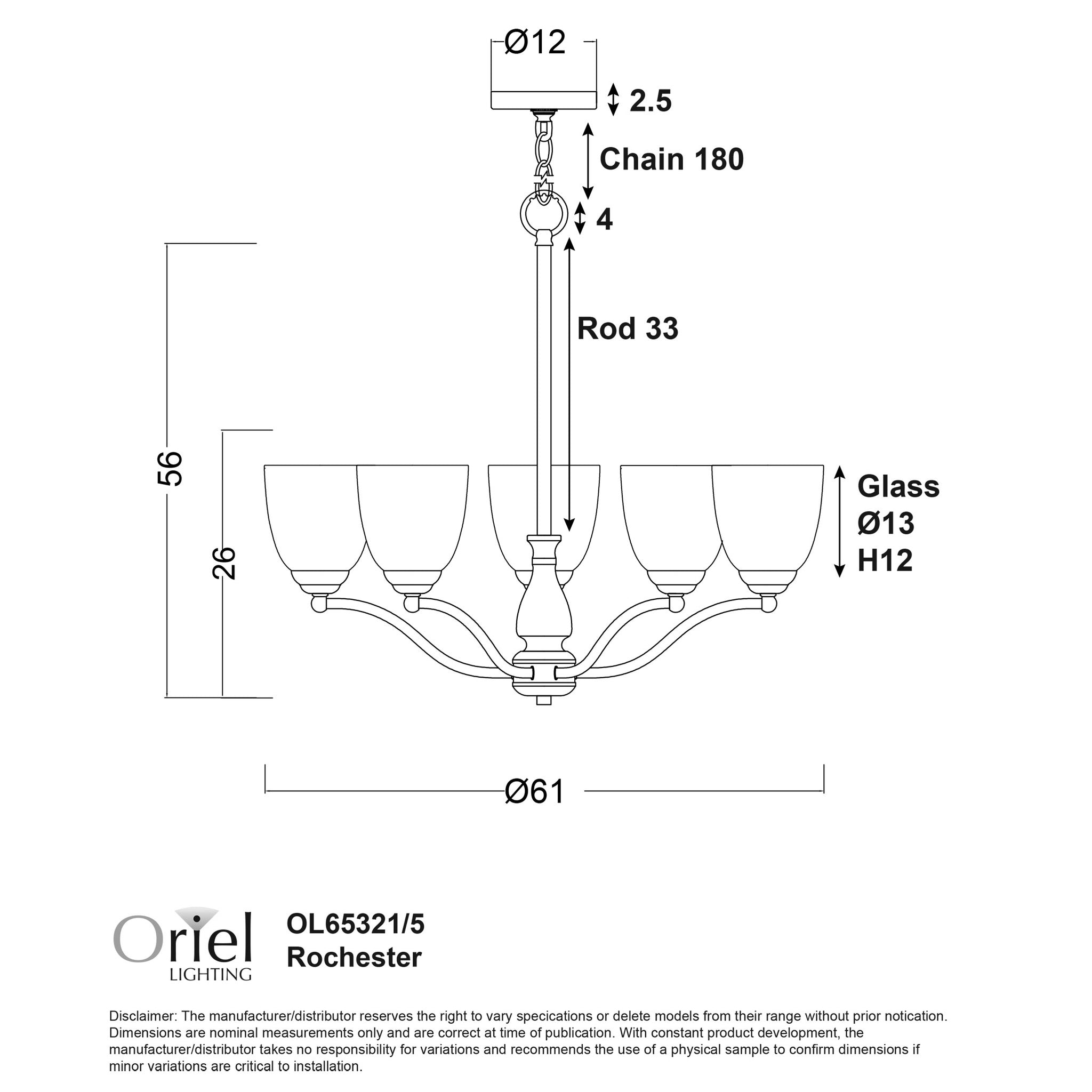 The Rochester 5 light Pendant is a classic decorative pendant featuring frosted glass shades. Supplied without bulbs, this fitting requires five E27 bulbs. The suspension length can be shortened by the installing electrician.