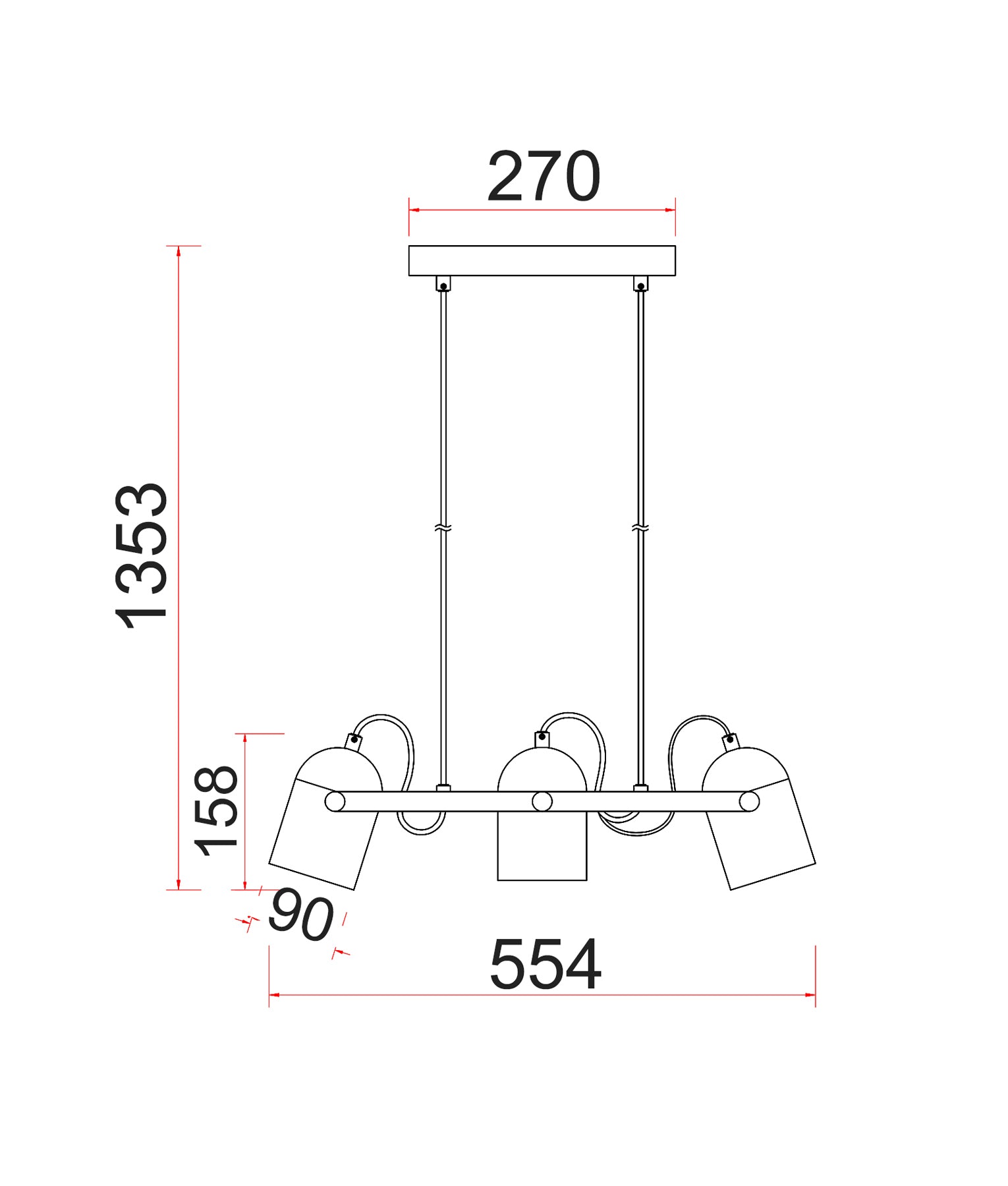 Description: PENDANT ES 3 x 60W BLK Ellipse w/Ant Brass Hardware & BLK Rect Canopy Iron L 554mm x OD 90mm x H 158mm & (1.2m x 2) Cable WTY 1YR