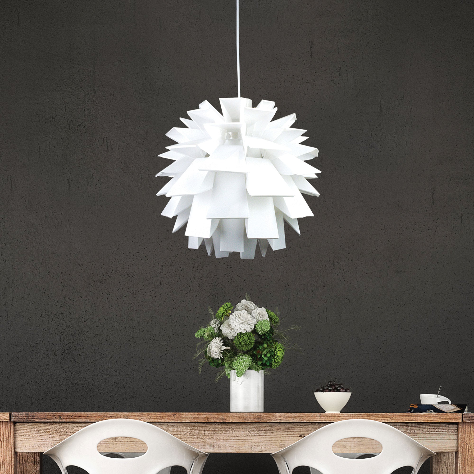 ZIGGY is a lovely feature pendant. Poly-propylene shade with a white canopy and white cord suspension. Ideal for use with an opal LED globe.