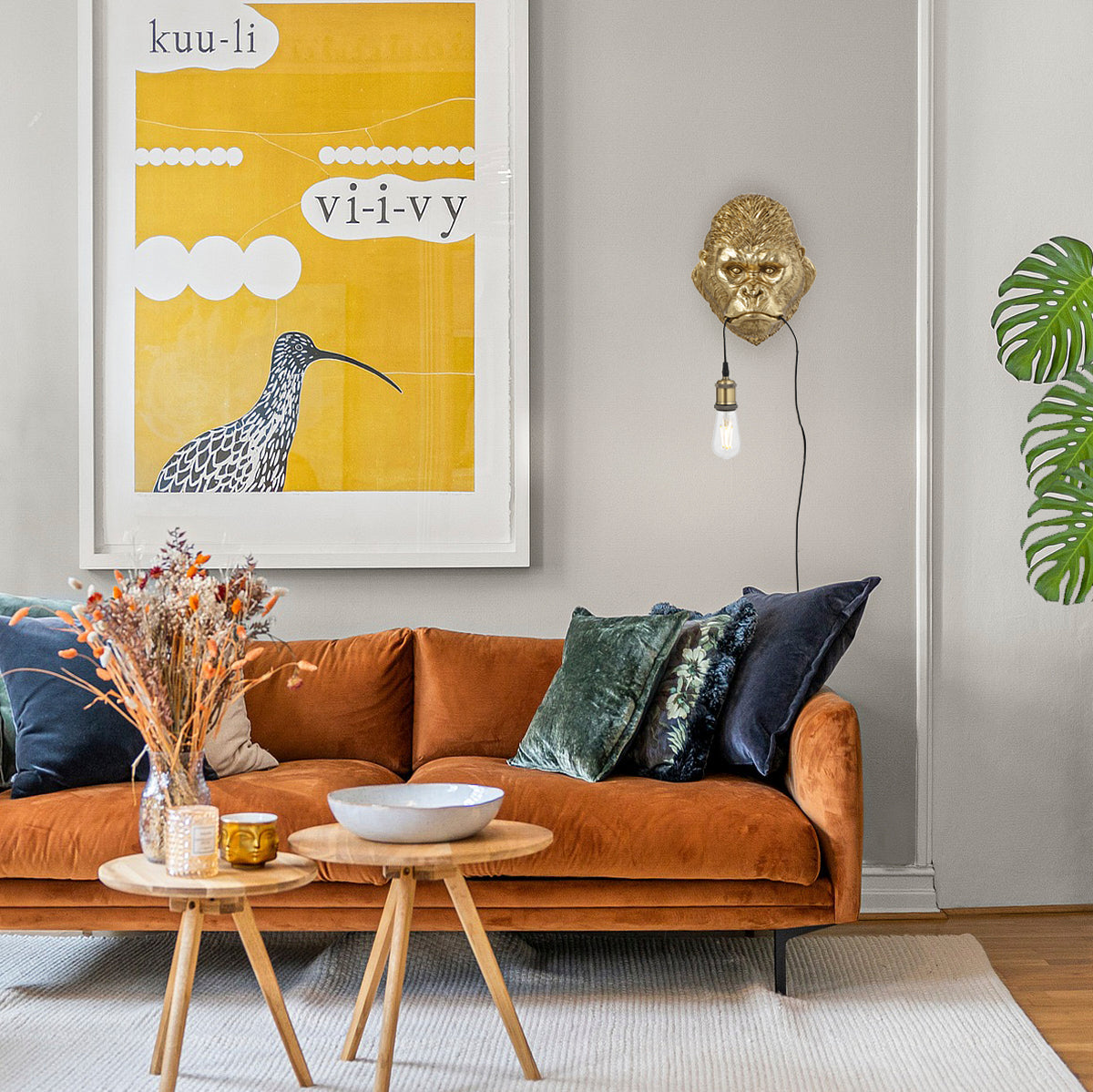The Kong Wall Light is a delightful blend of fun and sophistication. Its antique gold hue and polycarbonate construction with a glossy finish exude an intriguingly elegant charm. The design is accentuated by an exposed hanging globe with an adjustable 2 metre cable, adding a playful yet refined touch to any space.