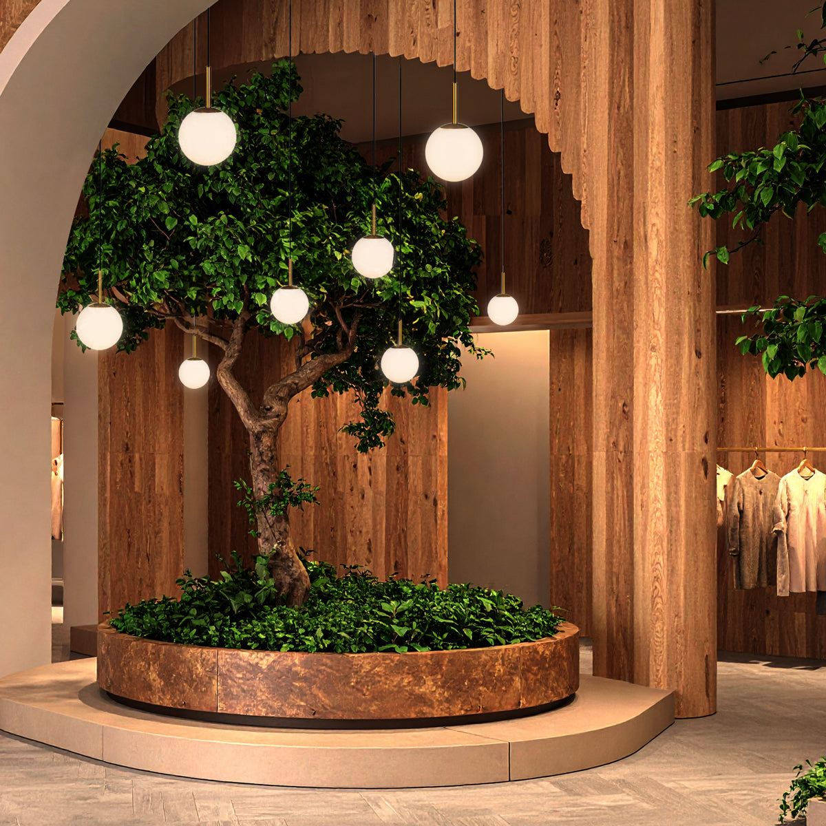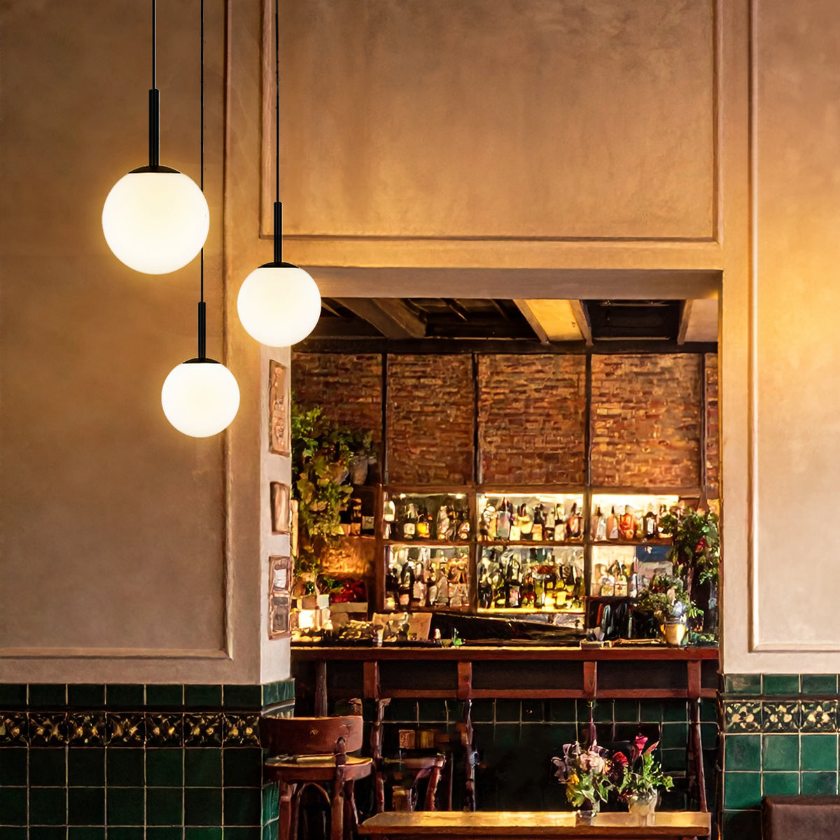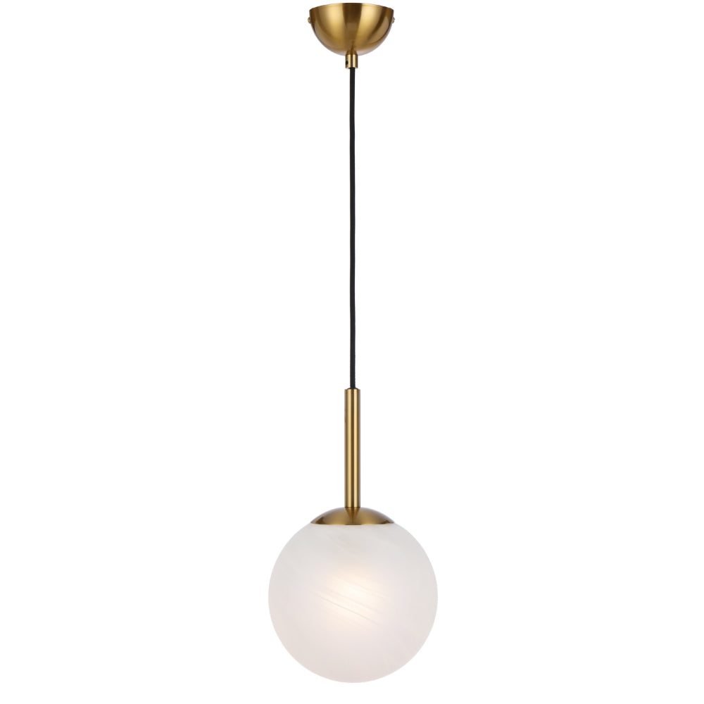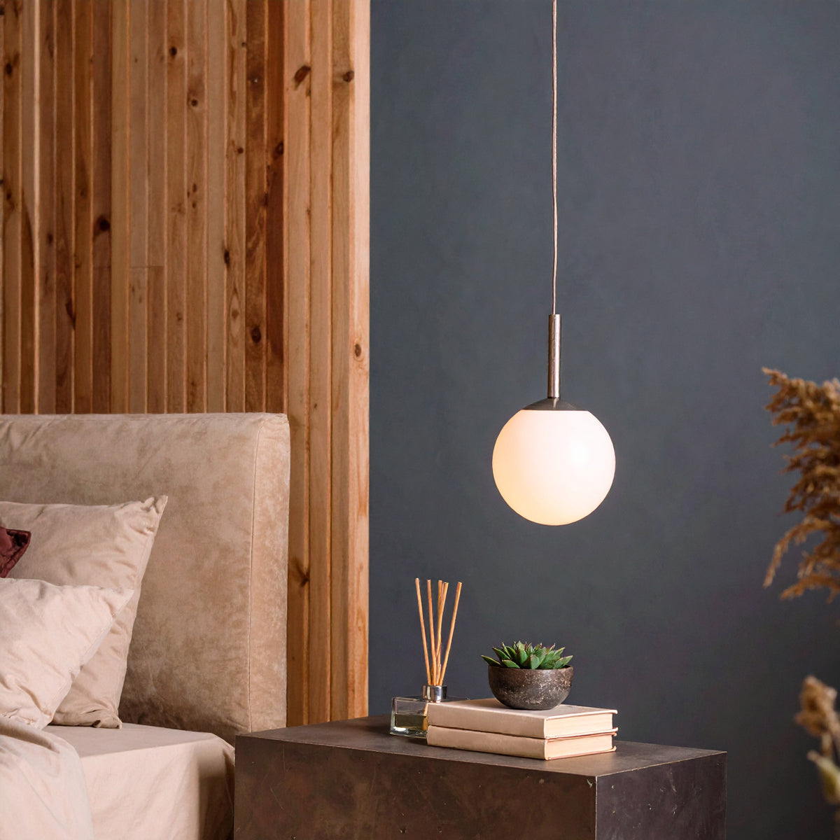 The Bally pendant is the essence of pure and simple lighting design. The sphere is finely blasted opal glass resembling the surface of fresh snow. The rounded shape is continued with the minimal metal gallery. A short metal stem finishes the story of mid-century modernism. Available in 4 sizes and 3 metal finishes.