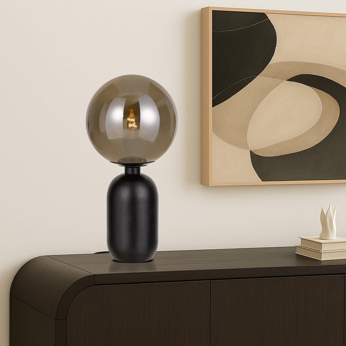 The Kade series is a simple and overstated design that captures the style of Nordic form. The high-quality mouth-blown spheres spread balanced uniform light and are supported by an oversized caplet of spun metal. Finished in Antique gold with opal matt glass or Satin black with smoke glass the design is simple and timeless. Available in 2 sizes of table lamps or pendants.
