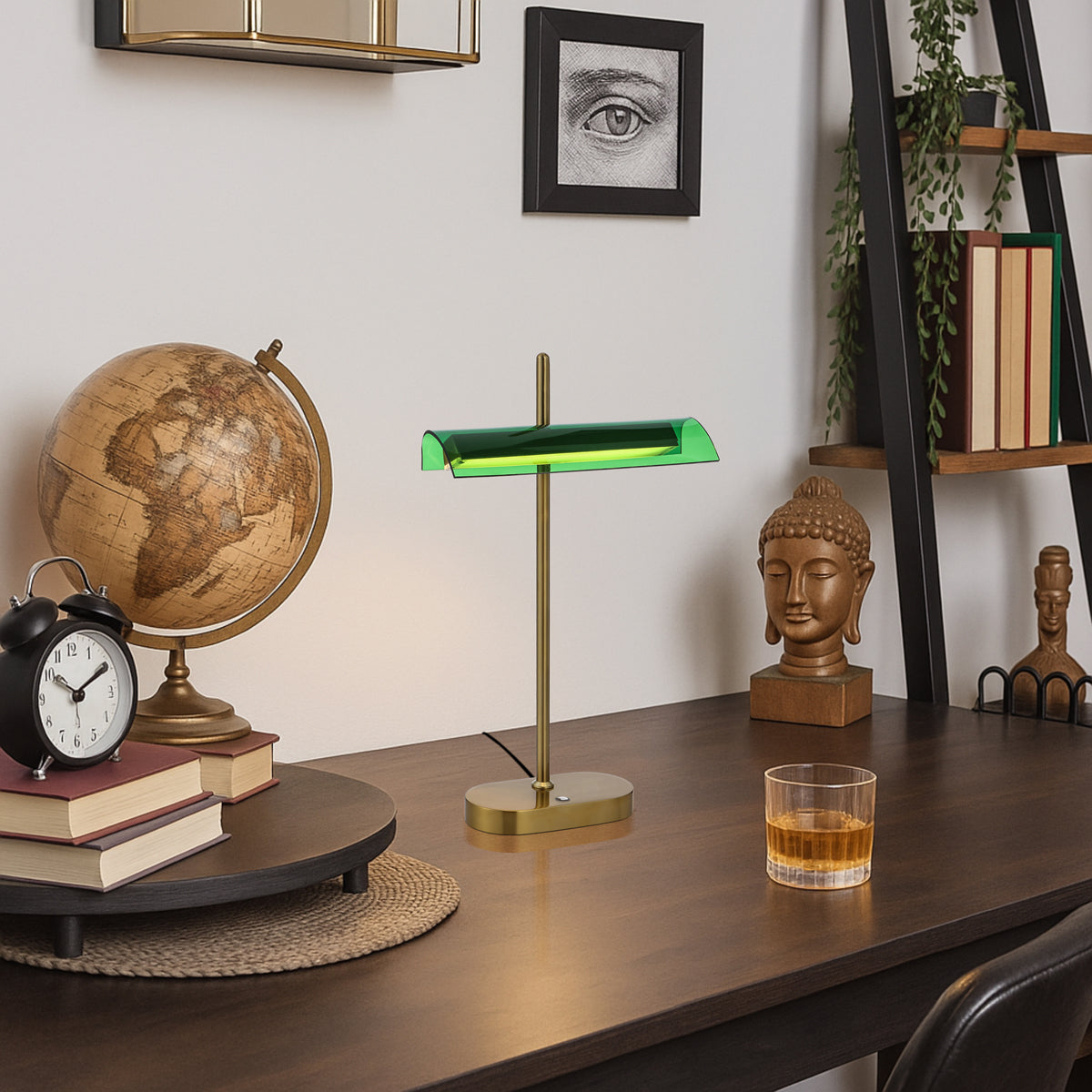 The Lyman table lamp is a sophisticated lighting solution featuring integrated LED technology for energy efficiency and versatile illumination. Available in elegant Antique Gold/Green and Gunmetal colours, this table lamp seamlessly combines a timeless design with modern functionality.
