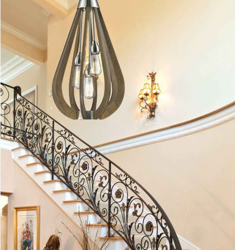 BONITO: Rustic Medium Taupe / Winter Moss Wood Tear Drop Pendant Light
