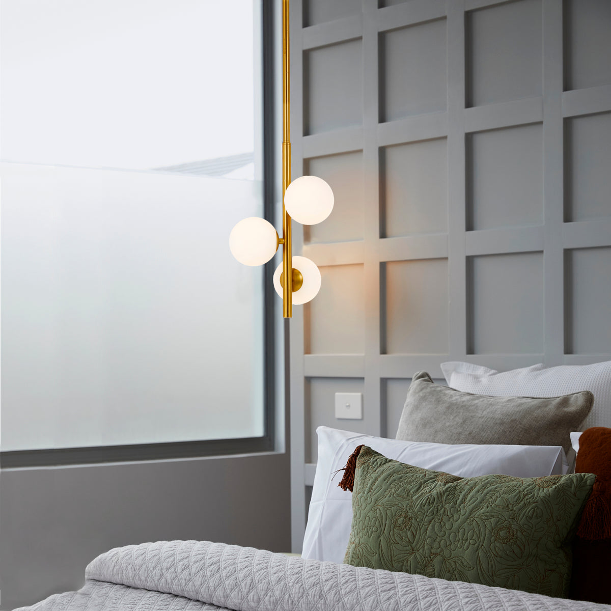 The Moran pendant will add elegance and style to your living space. This linear suspension is simple and striking, with just the right mix of mouth blown glass shades positioned around the central body. Available as an extra long horizontal 18 light or 14 light or 9 light or a vertical 3 light pendant. 3 colour combinations.
