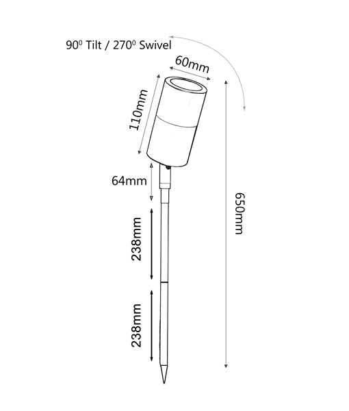 Description: SPIKE MR16 12V S/ADJGreen Patina Finish Solid Brass (Barrel L110mm x OD60mm) L650mm IP65 (no globe) WTY 2YR