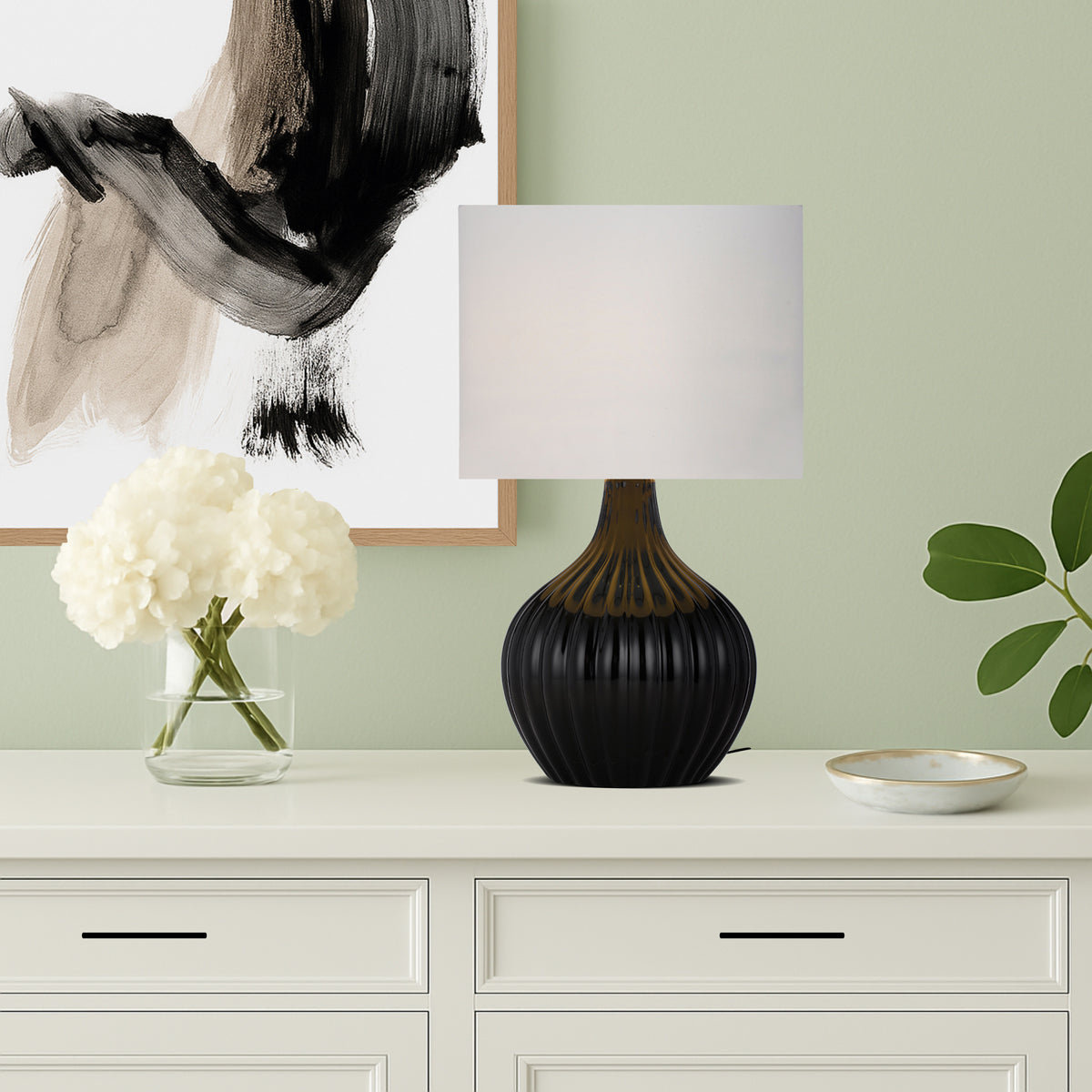 The Nord table lamp looks great on the bedside table, on a dresser in the hallway, or on the window ledge in the living room. The fabric shade compliments the ribbed ceramic base and provides cosy lighting with a warm feel. Available in 3 colour combinations.